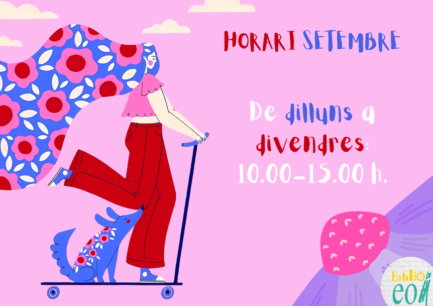 Els horaris d’atenció al públic de la biblioteca durant el mes de setembre seran de dilluns a divendres de 10 a 15 h.