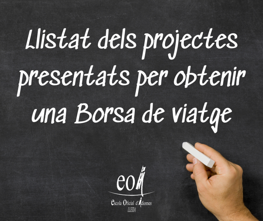 Un cop acabat el termini per presentar les sol·licituds per participar en la Convocatòria de les Borses de viatge, aquest és el llistat dels projectes presentats. Farem públic el guanyador de la convocatòria en el proper acte d’entrega de Premis EOI de Lleida, que tindrà lloc el proper dimecres, 6 de maig. Molta sort a tots!