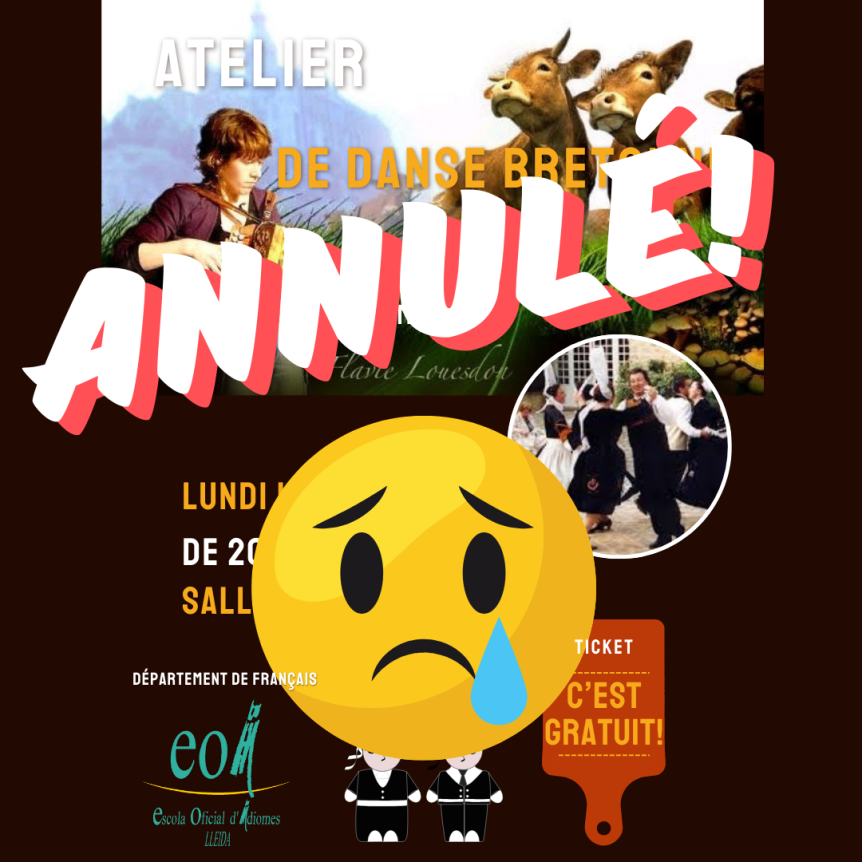 Désolée de vous apprendre que l’atelier de danse bretonne est annulé, la jeune femme devant l’animer étant malade😔 Mais ce n’est que partie remise! On vous informera d’une date alternative.