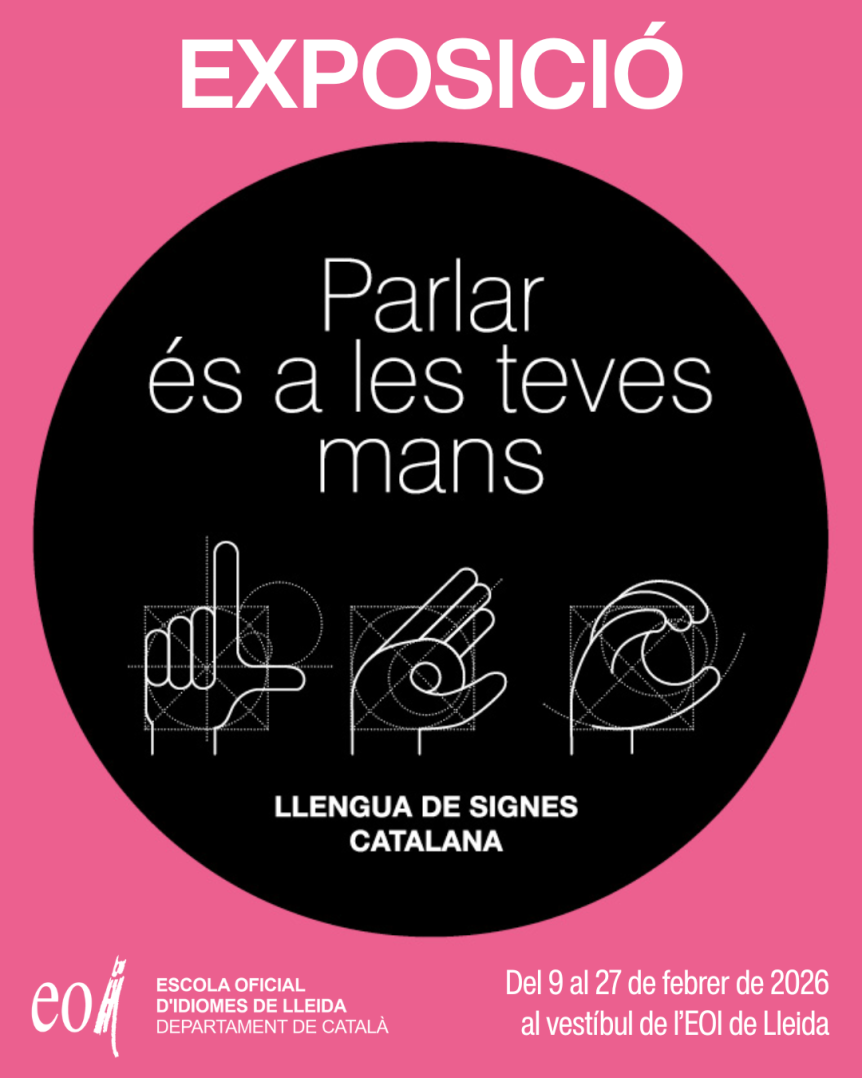 Heu parlat mai amb les mans? Del 9 al 27 de febrer de 2026, el vestíbul de l’Escola Oficial d’Idiomes de Lleida es converteix en l’escenari de l’exposició “Parlar és a les teves mans”. És una mostra itinerant creada per la Secretaria de Política Lingüística i oberta a tothom, amb l’objectiu de fomentar el coneixement de la llengua de signes …