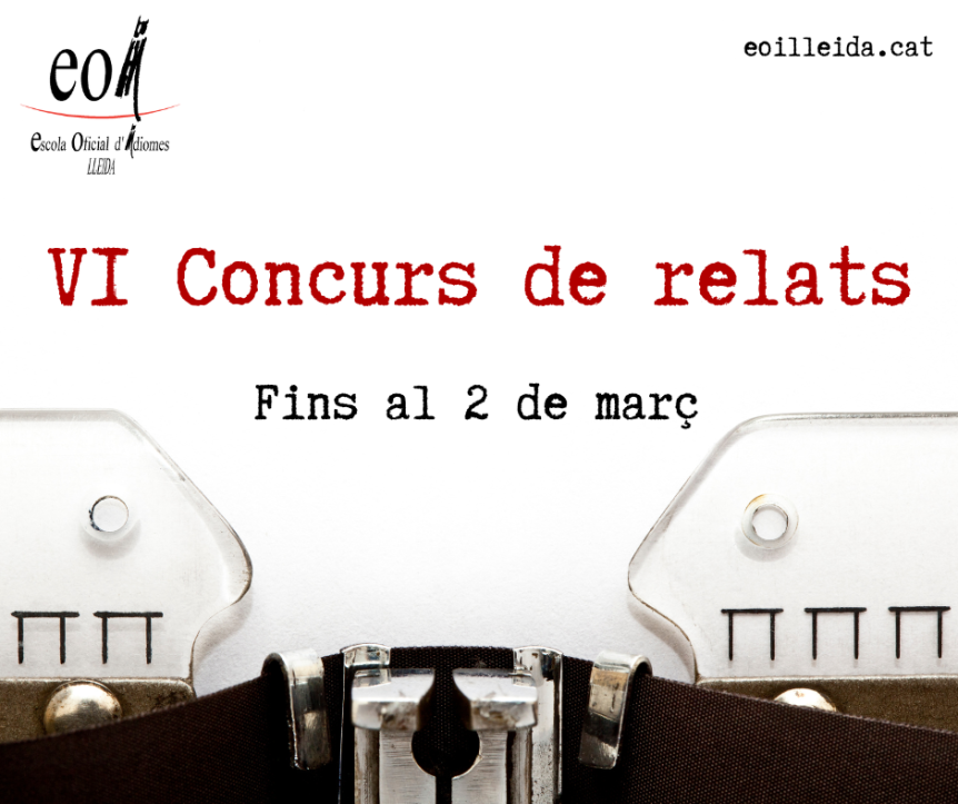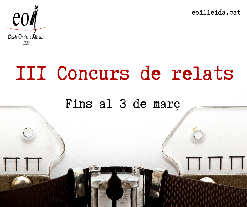 A l’EOI de Lleida volem promoure la creació literària. És per això que et proposem aquest concurs de relats. Llegeix bé les bases del concurs i anima’t a participar-hi. S’atorgaran 2 premis de 200 € cadascun: Tens temps fins al dia 2 de març de 2026 per presentar el teu relat. Més informació: