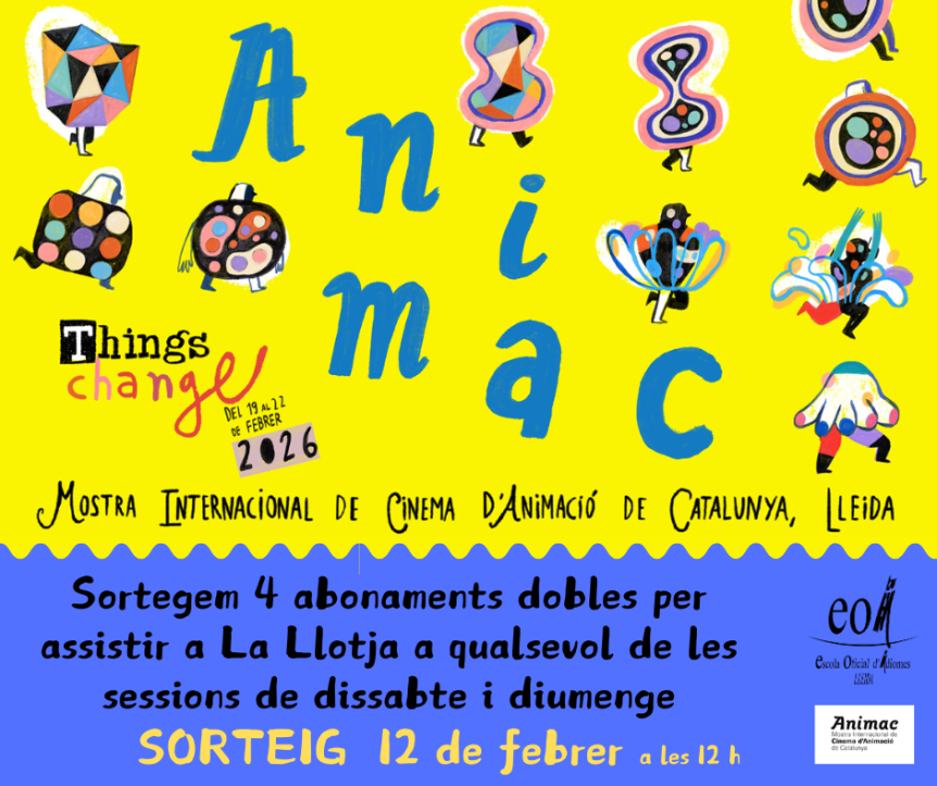 Ja s’apropa l’ANIMAC i, com cada any, els alumnes de l’EOI de Lleida podeu comptar amb descomptes i abonaments. A partir de dilluns, 26 de gener, s’obre el termini perquè us pugueu apuntar al sorteig dels 4 abonaments dobles per assistir a qualsevol de les sessions de dissabte i diumenge que ens ofereix la MOSTRA INTERNACIONAL DE CINEMA D’ANIMACIÓ DE CATALUNYA que se celebrarà a …